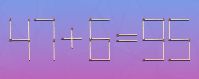 Så vi har skapat en bild där tändstickor läggs ut jämlikheten 47+6=95. Uppenbarligen är det något fel här, eftersom svaret borde vara 53.