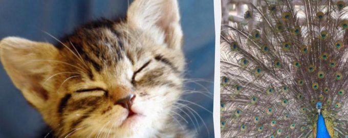 Kattungen var bakom påfågelns svans / collage från Moje-foto
