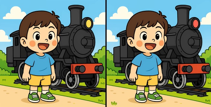 Så, är du redo för nästa utmaning? Ta en närmare titt på de två bilderna av pojken som står bredvid ångtåget. De kan se identiska ut vid första anblicken, men det finns 3 små skillnader. Tror du att du kan hitta dem alla på 29 sekunder? Prova och testa din synskärpa!