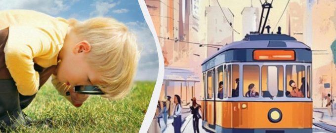 Bilden visar en livlig gata med människor som går längs den och en vanlig spårvagn som kör. Du måste ställa in en timer på fem sekunder och lyckas hitta felet innan tiden går ut. Är du beredd?