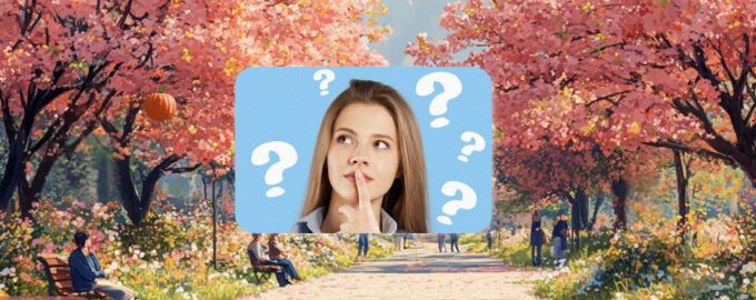Nedan ser du en bild av en pittoresk park. Körsbärsblommor blommar överallt, människor njuter av det varma vädret, kopplar av på bänkar eller går längs stigen. Det verkar vara en perfekt ledig dag, eller hur?