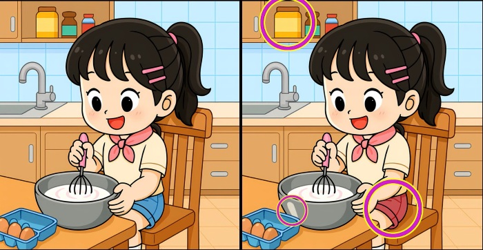 Så, är du redo för nästa utmaning? Ta en närmare titt på två bilder av en flicka som knådar kaksmet. De kan se identiska ut vid första anblicken, men det finns 3 små skillnader. Tror du att du kan hitta dem alla på 51 sekunder? Prova och testa din visuella skärpa!