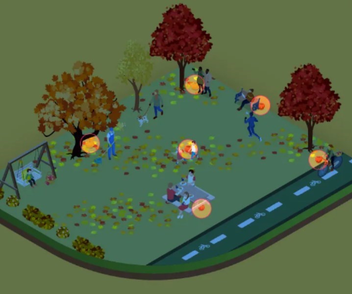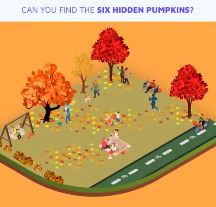 Du ska hitta 6 pumpor och har 10 sekunder på dig att lösa uppgiften. Titta noga på träden och människorna på lekplatsen.
